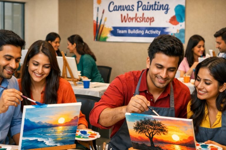 In this guided canvas painting workshop, participants explore their imagination with brush and color, transforming a blank canvas into a personal masterpiece. Whether it’s a corporate offsite, social gathering, or team engagement activity , the session is designed to inspire dialogue, collaboration, and creative joy.