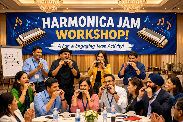Turn a simple pocket-sized instrument into a powerful team experience with the Harmonica Jam Workshop—a high-energy, inclusive musical engagement designed for corporates. This workshop blends creativity, collaboration, and instant gratification, making it perfect for offsites, leadership meets, and social gatherings.