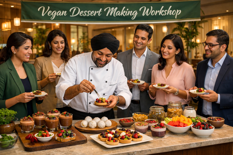 Led by an expert vegan culinary specialist, this session introduces participants to dairy-free, egg-free dessert preparation using natural sweeteners, nut-based alternatives, fresh fruits, and plant-based ingredients. Perfectly suited for corporate wellness initiatives, leadership retreats, social gatherings, and employee engagement programs, the workshop blends health awareness with experiential learning.